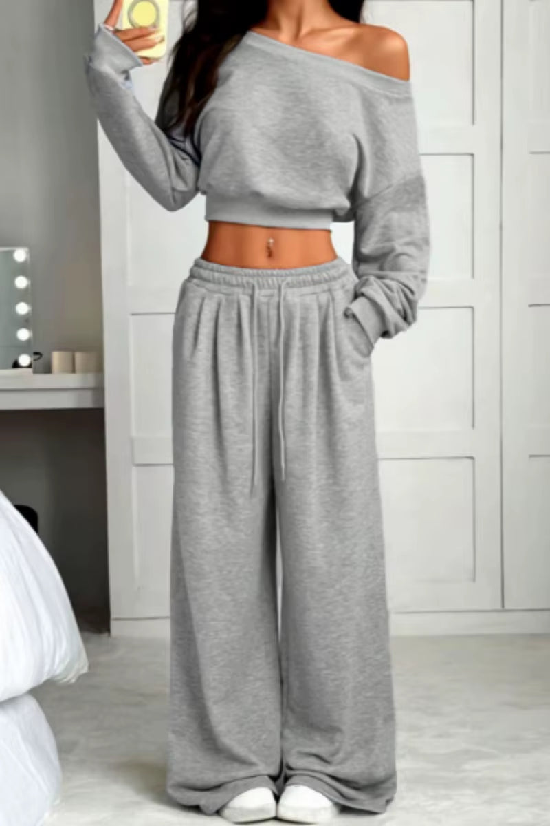 L'Ensemble survetement offre un style tendance et flatteur, parfait pour les activités sportives ou les moments de détente. Sa coupe surdimensionnée et ses épaules dénudées ajoutent une touche d'élégance à votre tenue.